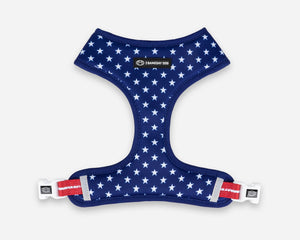 Our USA Home & Away Reversible Harness gives your pup two patriotic looks in one. With a reversible design, you can switch between stars and stripes. Made from water-repellent, breathable fabrics, this harness is lightweight, soft, and comfortable. Perfect for summer celebrations, neighborhood walks, and showing off all-American spirit wherever you go.